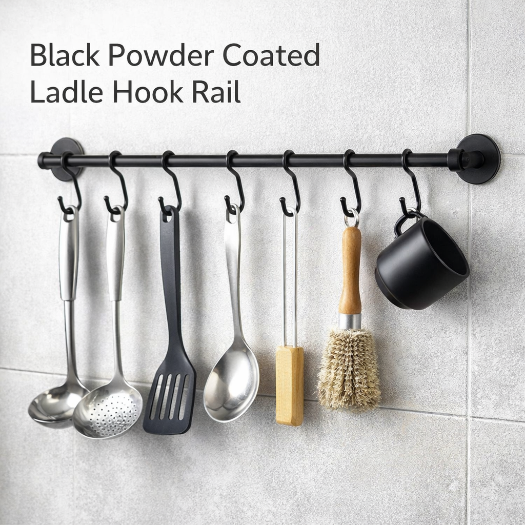 Ideal for homes, restaurants, and commercial kitchens, the Black Powder Coated Ladle Hook Rail is a must-have storage solution that combines durability, style, and convenience.