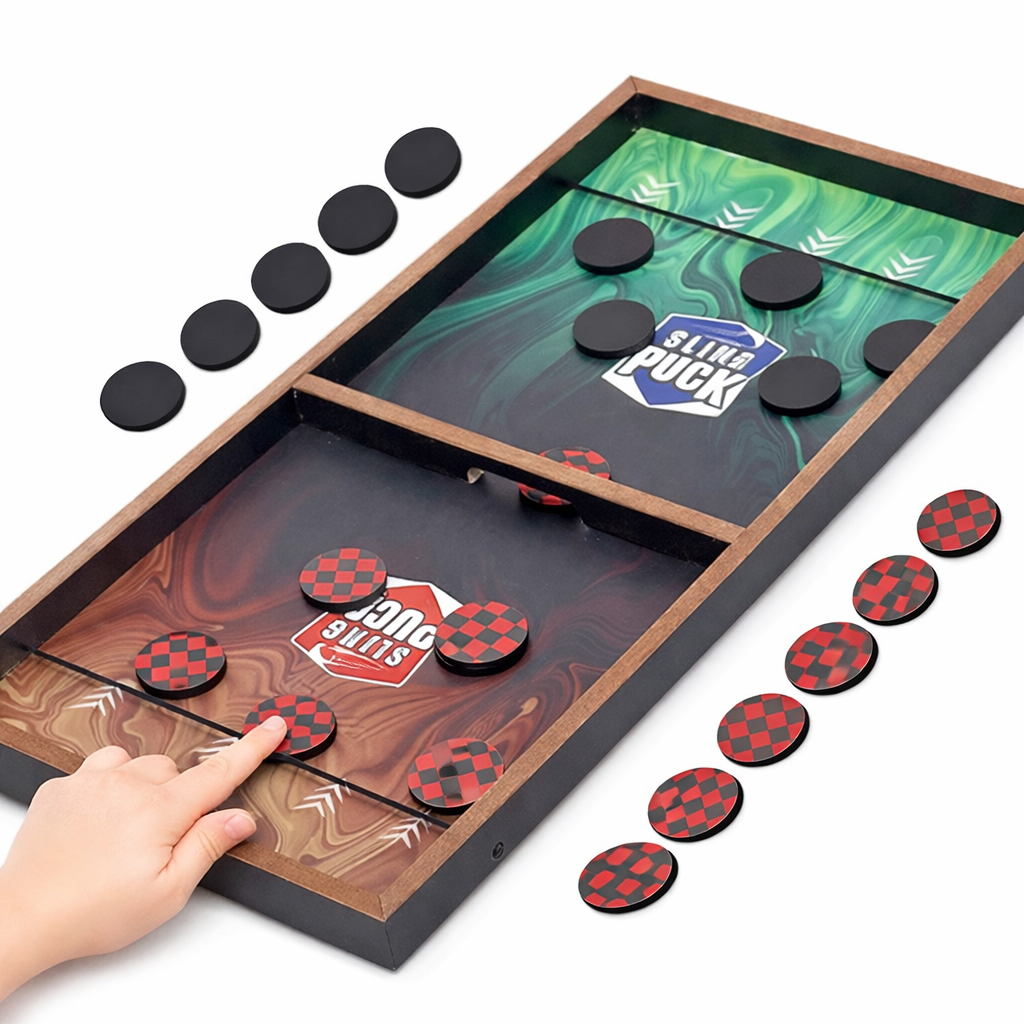 Crafted with a double-sided wooden design, this board allows you to easily switch between games, making it a great space-saving and value-packed option for families. The Sling Puck game delivers fast-paced action that improves reflexes, hand-eye coordination, and focus, while Ludo and Snakes & Ladders bring timeless fun and strategic thinking to every game session.
