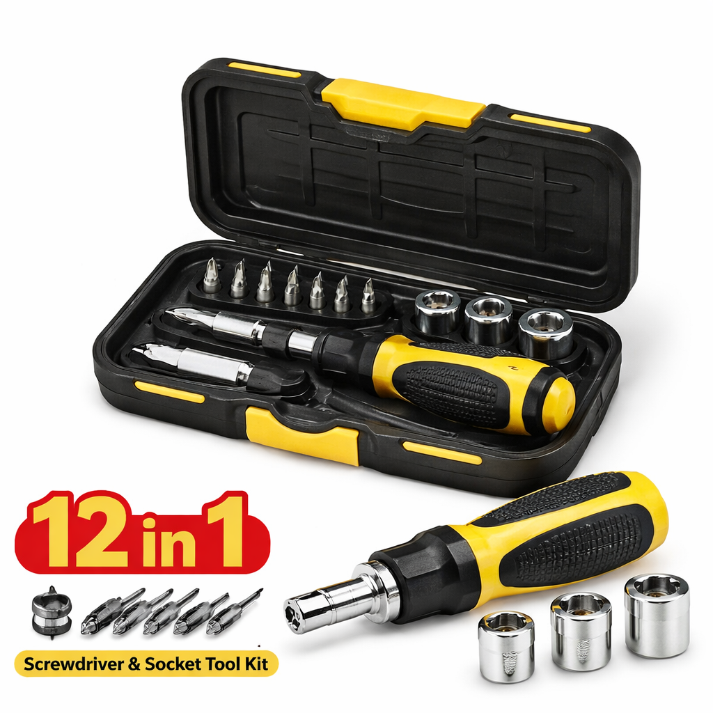 Make your daily repair and maintenance work easy with the Sahaj Enterprise 12 in 1 Household Hardware Socket Tools Kit Set. This compact and multi-purpose combination screwdriver and socket tool set is designed for quick home fixing tasks, appliance repairs, furniture assembly, and small workshop jobs. With multiple interchangeable bits and sockets, this tool kit is perfect for every home, office, or travel toolbox.