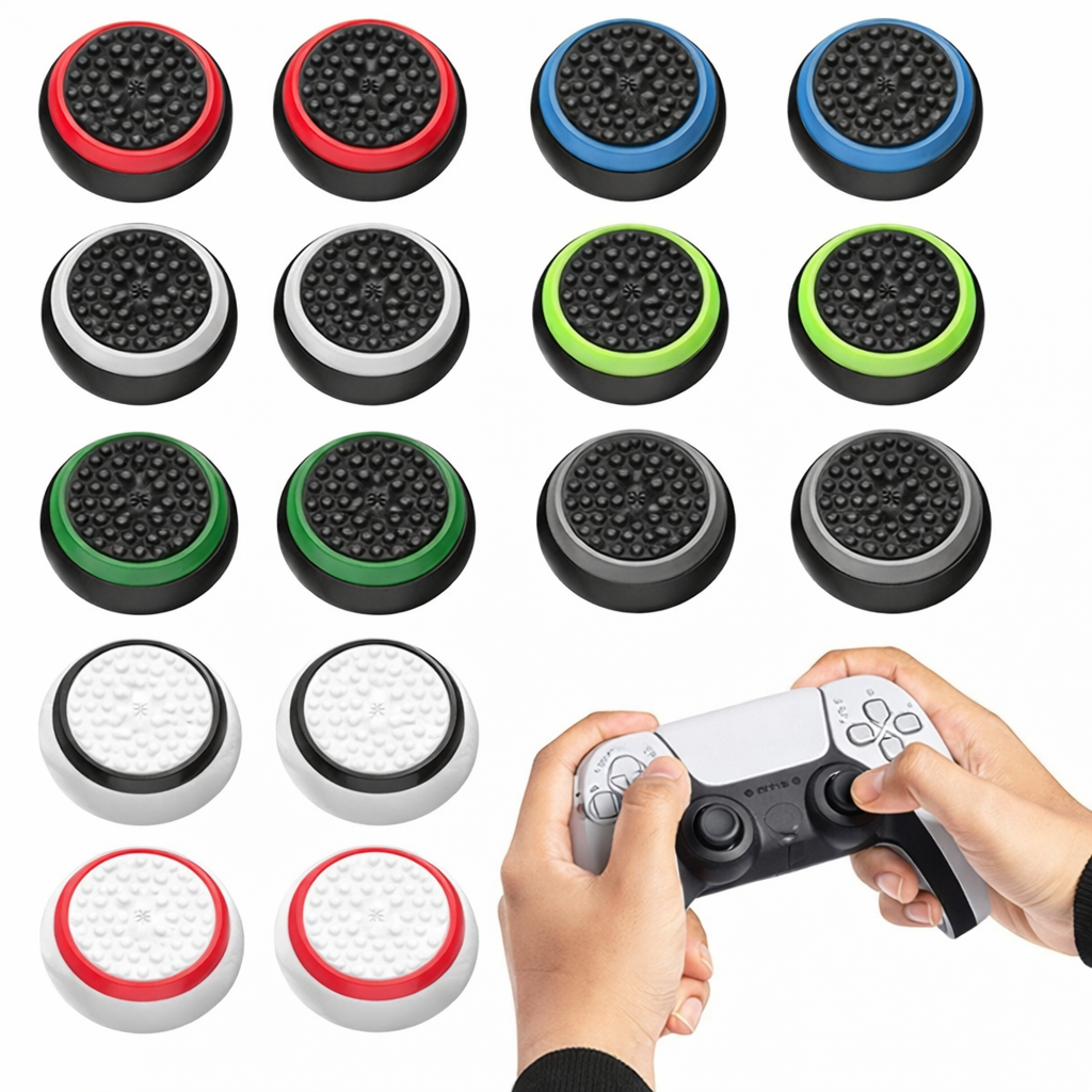 The Sounce 8 Pair / 16 Pcs Controller Thumb Grips are designed to enhance your gaming experience with superior grip and protection. Compatible with PS5, PS4, Xbox One, Xbox 360, and Switch controllers, these anti-slip joystick caps are made from soft silicone to provide a comfortable and firm hold. Whether you’re gaming for hours or playing in intense situations, these thumb grips reduce thumb fatigue and improve control. The soft silicone material not only enhances your grip but also protects the joystick from wear and tear. The package includes 8 pairs (16 pieces) of thumb grips, allowing you to customize your controller with multiple color options for a personalized touch.