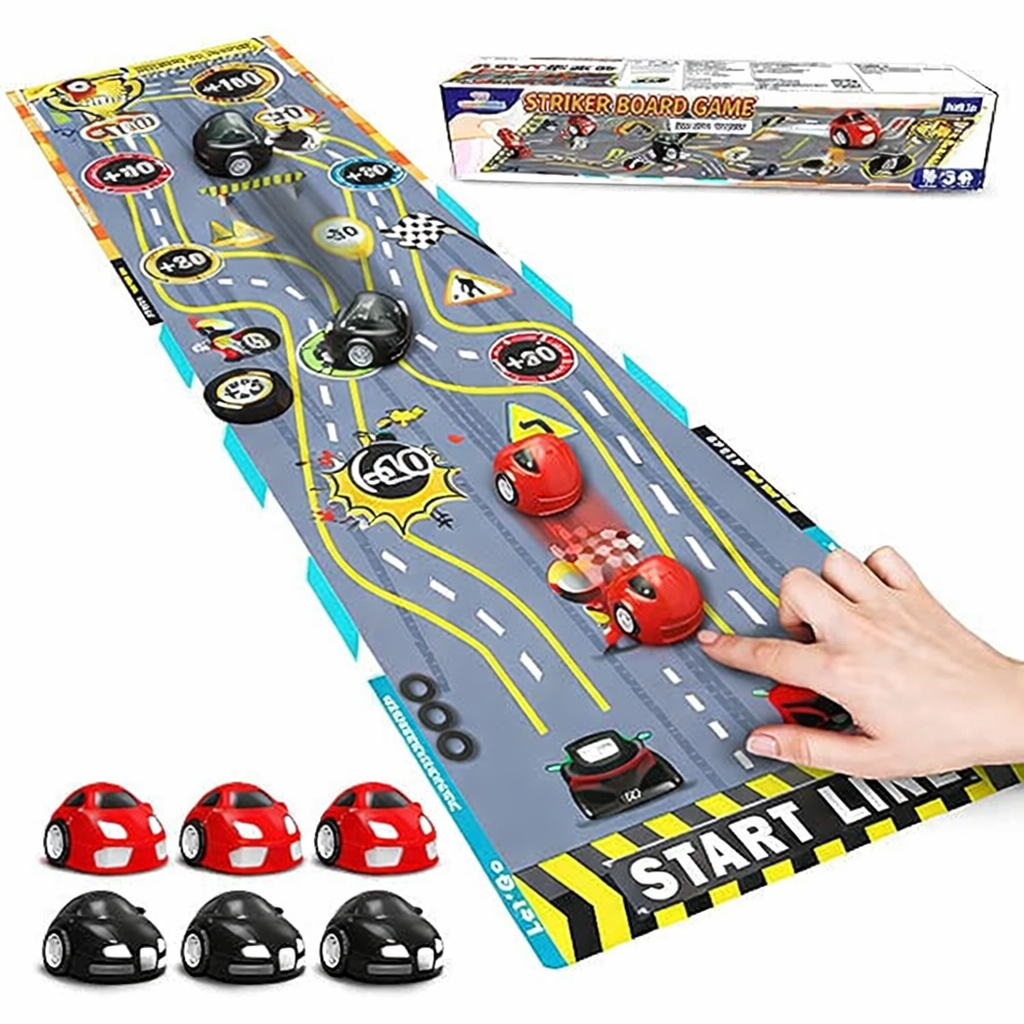 🎯 Includes play mat & 6 car strikers